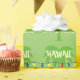 Navidades tropicales envolviendo el papel Mele Kalikimaka. Trato y destino de temporadas personalizables. Mele Kalikimaka significa Feliz Navidad en Hawaii. Diseño personalizado de envolvimiento de regalo con palmeras y luces de Navidad de colores. Tema de verano.