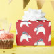 Navidades modernos y minimalistas envuelven papel con osos polares con bufandas de rayas azules. Viene en rollo continuo. Perfecto para los Navidades/temporada de vacaciones. Sobre un fondo rojo clásico con más opciones de color disponibles en la tienda de estudio claramente enredado. También viene en conjuntos de hojas de patrones mixtos.