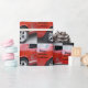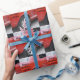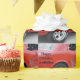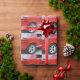 Un vintage, mustango rojo se ofrece en este papel de regalo del cumpleaños para un padrino.