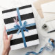 Este es un elegante papel de embalaje que podría usarse para cualquier ocasión. Tiene rayas blancas y negras.