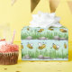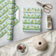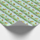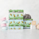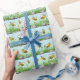 Papel para regalos para niños, fiestas de cumpleaños, celebraciones familiares. Diseño con abejas adorables y adorables en césped, suaves colores azules verdes.