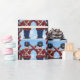 Este papel regalo de envolver de lino tiene filas de dos decoraciones de soldados petardos sobre un fondo azul cielo. Este papel de envoltura es un artículo elegante para los regalos de los Navidades de tus seres queridos así como un gran regalo para alguien especial.