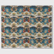 Este papel de envoltura presenta un diseño navideño vintage con ángeles crúbicos volando entre nubes y estrellas doradas. Los ángeles están vestidos con batas pastel, con delicadas alas y coronas de flores en la cabeza. El fondo es un cielo nocturno profundo y estrellado, con brillantes vigas de luz de algunos ángeles. Grandes estrellas de brújula dorada acentúan la escena, añadiendo un toque celeste. En la parte superior e inferior, los carteles con la frase "Alegría al mundo" enmarcan elegantemente el diseño. La estética general es nostálgica y paradisíaca, evocando un sentimiento de paz y alegría.