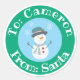 Esta etiqueta de pegatina personalizado incluye un tema de Navidades festivos que es perfecto para etiquetar tus regalos. Un lindo muñeco de nieve es retratado en el centro, de pie bajo la caída de la nieve. Un nombre de ejemplo se imprime en la parte superior, sobre un cartel verde. Puede personalizar el pegatina para incluir su propio nombre personalizado u otro texto. "De Santa" se imprime al final del mismo tipo de letra.