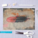 Un estudio encantador en contraste con una delicada pluma negra y roja contra el papel envejecido.