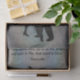 Papel de tela de regalo con una silueta de una pareja bailando contra un fondo plateado purpurinoso con una cita sobre el amor de Sófocles.
