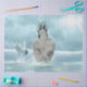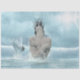 Papel de tejidos con la imagen de una sirena en el mar en colores azul y blanco.