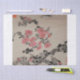 diseño japonés elegante con flores de cerezo y silueta de grúa