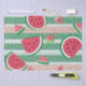 Este diseño de papel tisular presenta un patrón relacionado con la sandía con rayas verdes y rosas. Este diseño aportará energía divertida y alegre a sus fiestas de verano e invitaciones.