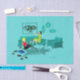 Parece que va a ser un momento divertido con este periódico de Chicas retro kitschy. El diseño de arte minimalista, al estilo de los años 60, cuenta con dos mujeres con cócteles rosas en una moderna sala de estar totalmente de mediados de siglo, con un ambiente moderno, acuático y turquesa. Estas señoras saben cómo relajarse. La belleza del cabello cuervo en el vestido verde, coquetón, está tumbado en el sofá atómico. Su compañero rubio está sentado sobre una alfombra de papel de cebra, con un top rojo y pantalones ajustados y negros. El reproductor de discos de vinilo vintage y las lámparas de linterna de papel dan un toque de humor. Sobre el sofá moderno cuelga una estampa enmarcada, de época espacial, de estampado artístico.