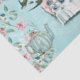 El papel pintado de color pastel floral de color azul pálido y rosa en el agua presenta a Alice in Wonderland's tea fiesta del libro de los niños, con Mad Hatter, March Hare y Dormouse, con rosas y hojas rosadas, texto del manuscrito escrito a mano y hermosas golondrinas vintage que parecen salir de una tetera y volar al cielo, girando alrededor de Alicia (el Conejo Blanco) está acechando en algún lugar del follaje y tímido en el fondo es un reloj de bolsillo vintage), lo que hace que un hermoso papel de tejido con temas de té y literatura británicos vintage sea perfecto para envolturas de regalo y descomposición y artesanías.