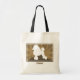 Tres de madera, los tonos terrosos componen la esta bolsa de asas enrrollada del caniche. La silueta de la raza del perro está en el centro, con ángulos radicales en el fondo. Abajo está el nombre de la raza. Regalos frescos del caniche para los amantes del perro.