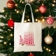 Pequeña bolsa de té para todos tus Navidades comprando artículos. Diseño rosa en el frente que dice Feliz Navidad.