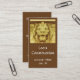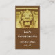 Cabeza de león arquitectónico con los campos de texto para nombre de negocio y número de teléfono. Back tiene tres campos para una línea de etiquetas, lista de especialidades y dirección. Tanto la parte delantera como la trasera están en orientación vertical.