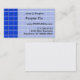 Los cuadrados tridimensionales azules se multiplican sobre toda la tarjeta, pareciéndose a los azulejos de cerámica o vidrio. Tres filas verticales izquierdas son azul oscuro, el resto de cuadrados son un fondo débil para la información comercial pertinente de Nombre, Negocio, números de contacto (todos para ser personalizados).