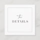 Utilice nuestras tarjetas de detalles modernas para que sus huéspedes puedan escanear el código QR y ver los detalles de su boda y la dirección del sitio web. Este artículo es parte de nuestra suite de invitados a la boda de Colette C300, por favor visite nuestra tienda para ver la colección de artículos de coordinación.