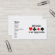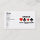 ¿Le obsesionan sobre el juego del puente? Muestre su actitud duplicado torcida del puente para la próxima vez que usted se presenta con estas tarjetas de visita que ofrecen los cuatro juegos de la tarjeta junto con el refrán "puente es mi obsesión". ¡Haga que otros hacen una doble-toma sobre el juego que ocupa sus pensamientos con una dosis de la actitud del puente hoy!
