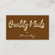 Bienvenidos a la era en la que una tarjeta de visita no es sólo una formalidad—es un portal. Presentamos la tarjeta de presentación en castaño y oro para Calidad de las uñas, que combina el encanto intemporal de la escritura elegante con la comodidad de vanguardia de un código QR. Esto no es sólo una tarjeta de visita, es una revolución manual en la interacción con los clientes. Decorado en un lujoso marrón con acentos dorados, esta carta susurra sofisticación clásica y habilidad moderna. La escritura, fluida y elegante, evoca un encanto del viejo mundo, sugiriendo que el arte de las uñas perfectas tiene que ver tanto con la tradición como con la innovación. El viaje emocional comienza en el momento en que esta carta se desliza en tus manos. La calidez de los colores y el acabado liso de las tarjetas hablan de un negocio que valora la calidad y se preocupa por los detalles. Es tranquilizador, como el gentil toque de un experto técnico de uñas que se prepara para transformar tus manos en obras de arte, pero es el código QR el que transforma esto de una simple tarjeta de visita en una narrativa de conveniencia y conexión. Un grifo, y te transportan a un destino digital donde se pueden reservar citas, se pueden navegar los diseños y el mundo de las uñas de calidad se abre ante ti. No es solamente eficiente; es mágico, convertir el acto mundano de reservar una cita en una experiencia digital atractiva. Imaginen las historias que se podrían esparcir en torno a una tarjeta de este tipo en un artículo para el New York Times, quizás una discusión sobre cómo las empresas están mezclando tecnología con servicios tradicionales para mejorar la experiencia del cliente. Esta tarjeta podría simbolizar una nueva era de compromiso con los clientes, donde cada interacción es una oportunidad para conectarse más profundo, no sólo a través de los servicios sino también a través de la forma en que se accede a esos servicios. En los medios sociales, el rumor podría ser igual de atractivo. Etiquetas como #TechTouch, #NailTheFuture y #ScanForStyle podrían circular, atrayendo a una audiencia experta en tecnología que valora tanto la belleza como la innovación. Cada escaneo, cada compartición, cada cita hecha a través de esta tarjeta amplifica la narrativa de un negocio que está tan comprometido con la calidad en el servicio como lo está en la interacción con el cliente. Esta tarjeta de visita hace más que informar; invita e inspira. No se distribuye; es compartida activamente, una clave para desbloquear una integración perfecta de los servicios de belleza y conveniencia digital. En el vasto mundo del arte de las uñas, donde los detalles definen el arte, esta carta se destaca como una obra maestra del marketing, un faro de cómo las empresas tradicionales pueden prosperar en una era digital adoptando la innovación sin perder su toque personal.