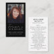 Esta simple, pero elegante, tarjeta cristiana de oración, presenta un diseño limpio y minimalista e incluye una foto de los fallecidos, así como su nombre y año de nacimiento y junto con las palabras "Para siempre en nuestros corazones", escritas en un moderno, blanco y manuscrito tipo de letra de caligrafía con un elegante fondo negro. Al fondo está el texto de Salmo 23, que se cambia a cualquier texto que se prefiera. Personalice fácilmente esta tarjeta de memoria funeraria usando las cajas de plantilla de texto. Para cambiar fuentes o colores o cambiar la posición de cuadros de texto en cualquiera de las plantillas, haga clic en "Personalizar" y desplácese por los cuadros de plantilla de texto para hacer clic en "Editar usando herramienta de diseño". Si necesita ayuda adicional para ajustar cualquiera de estas plantillas, aproveche el servicio gratuito de Zazzle en https://www.zazzle.com/live o póngase en contacto conmigo a través del sistema de mensajería de Zazzle. Además, si necesitas algo que no veas en esta colección, por favor avísenme. Me encantaría diseñarlo para ti. Por favor tenga en cuenta que yo creo los diseños, pero todos los trabajos de impresión y envío son realizados por Zazzle en sus instalaciones de producción, así que si hay algún problema con su pedido, por favor contacte con su servicio de atención al cliente al 1-888-892-9953 o https://www.zazzle.com/about/ask