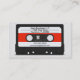 Diseño de tarjeta de negocios de cinta cassette sobre fondo de lino.