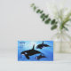Dos ballenas asesinas y un macho cazan juntas en el hermoso océano claro.