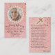 Tarjeta de oración totalmente personalizada con una cruz decorativa en la parte trasera y versos de oración que se pueden personalizar. La tarjeta de oración viene con un personalizable y una foto personalizada y con un nombre personalizado y fecha del funeral. El diseño presenta un estilo de escritura a mano/caligrafía junto con fuentes elegantes y elegantes. Nuestra tienda también incluye una variedad de otras tarjetas con tarjetas botánicas de oración fúnebre, decoradas con color rosa y floral, y tarjetas purpurinoso para satisfacer todas las necesidades. Además, puedes ponerte en contacto conmigo en cualquier momento si quieres alguna personalización personal y adicional para tus tarjetas, estoy aquí para servirte.