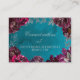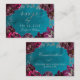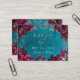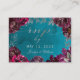 Una tarjeta RSVP en línea con invitación a bodas en color azul verde azulado y burdeos de joyas de agua con una tarjeta de visita de tamaño excesivo con los mismos gráficos que la invitación del mismo nombre, con una caligrafía de tipo de letra con la palabra "rsvp", en un guión de plata brillante en la parte delantera con sus nombres y la parte posterior ofrece su dirección de sitio web pidiendo a los invitados que se conecten..