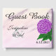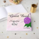 Flores violetas de bonito con un lavado de acuarela violeta de color crema violeta. Personalice con los nombres de la novia y el novio y el boda de citas en la portada. El Libro de invitados está escrito delante del libro, y el Amor está escrito al dorso del libro en escritura negra. Nuestra Historia de Amor está escrita a un lado. Diseño original de obras de arte de TamiraZDesigns.