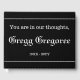 Este libro de visitas mínimo para el funeral/conmemoración de las condolencias incluye el mensaje "Estás en nuestros pensamientos", y el nombre personalizado y las fechas de nacimiento/muerte de la persona que ha fallecido. Se podría usar para registrar recuerdos preciados de alguien que ha fallecido recientemente.