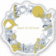 ¡Las pequeñas cosas de los niños divertidos y dulces están listas para el año escolar! Coloridos pegatinas para bolsos escolares, reserva de recortes, cartas, trabajo en casa, como nota Gracias y más. El diseño presenta pequeños objetos escolares -gorra, bolso, reloj, caramelo, arco, corbata, símbolo musical y nota, manzana y cereza en verde oliva y blanco- como borde sobre fondo azul claro, y un área de escritura blanca. Puede personalizar el texto de la plantilla agregando el nombre o la nota del profesor o del niño para un regalo o celebración especial.