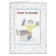Un niño feliz está listo para volver a la escuela. El niño podría ser de primer grado hasta el séptimo u octavo grado en la escuela secundaria. Las letras de los alfabetos forman el fondo. el niño está sentado en los libros y sosteniendo una calculadora y lápices. Tarjeta divertida para enviar cuando un niño vuelve a la escuela.