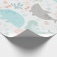 En este papel de envolvimiento de animales de mar pastel se incluye una ballena, un tiburón tigre, una jalea, una tortuga marina y caballitos de mar, así como hierba marina, conchas y pez estrella.