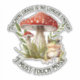Ilustracion acuarela de rana y setas con el texto "Tocar hierba ya no es suficiente. Tengo que tocar musgo".