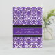 Décimo octavas invitaciones de la fiesta de cumpleaños del personalizado en la púrpura oscura elegante del ciruelo, modelo floral clásico blanco y negro del damasco. Añada su nombre y vaya de fiesta los detalles para una décimo octava invitación única y elegante de la fiesta de cumpleaños.