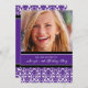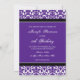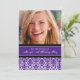Décimo octavas invitaciones de la fiesta de cumpleaños de la foto de encargo en la púrpura oscura elegante del ciruelo, modelo floral clásico blanco y negro del damasco. Añada su nombre, foto, y detalles del fiesta para una décimo octava invitación única y elegante de la fiesta de cumpleaños.