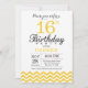 décimosexto Invitación del cumpleaños con Chevron amarillo. Blanco y negro. Cumpleaños de los niños. El muchacho o el chica Bday invita. Para el arreglo para requisitos particulares adicional, haga clic por favor el "personalizar él" botón y utilice nuestra herramienta de diseño para modificar esta plantilla.