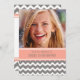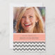 Las décimosexto invitaciones de la fiesta de cumpleaños de la foto de encargo en rosa anaranjado del melocotón elegante y moderno, grises carbones y el galón blanco del diversión y casual zigzaguean modelo de las rayas. Añada su nombre, foto, y detalles del fiesta para una décimosexto invitación única y elegante de la fiesta de cumpleaños.