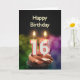 Una torta de cumpleaños con las velas. Las velas se componen del número 16, para un décimosexto cumpleaños. Una tarjeta de cumpleaños conveniente para todos.