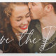 Esta moda permite guardar el diseño de fechas con una gran foto horizontal y un saludo de guiones que abarca todo el exterior de esta tarjeta triple. El saludo al frente dice simplemente "Salva la Fecha". Cuando abres completamente la tarjeta ves una foto a la izquierda, una foto a la derecha, y en el medio estás guardando el texto de la fecha . Este diseño es una moda y una declaración moderna. El diseño multifoto te permite subir un total de tres de tus fotos favoritas. *CONSEJO DE DISEÑO: Asegúrate de elegir "LLENAR" para que tus fotos lleguen hasta el borde. "Desenmascarar" las fotos si es necesario para editarlas.