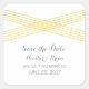 Deco moderno sencillo y elegante Salve a los Pegatinas con un diseño Art Deco de rayas cruzadas en amarillo. Estos clásicos guardan los pegatinas de fecha que se pueden personalizar fácilmente con los detalles de su boda. Para obtener más opciones de personalización, haga clic en el botón Personalizar.