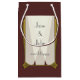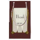 Regalos de paquetes para sus asistentes, padrinos, familia y cualquier otra persona que se merezca algo especial en estas bolsas de regalo, perfecto para cualquier boda o evento con un toque de estilo clásico de los años 20. La parte delantera de esta bolsa roja de ladrillo está decorada con un marco dorado inspirado en el Art Déco y con focos estilizados que resaltan un sencillo "Gracias". La parte posterior tiene un marco y focos coincidentes con el texto de ejemplo que puede personalizar para ajustar los detalles de su día especial. No olvide visitar los otros productos del Swanky Art Deco in Red para crear una imagen realmente coordinada para su evento.