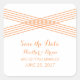 Deco moderno sencillo y elegante Salve a los Pegatinas con un diseño Art Deco de rayas cruzadas en naranja. Estos clásicos guardan los pegatinas de fecha que se pueden personalizar fácilmente con los detalles de su boda. Para obtener más opciones de personalización, haga clic en el botón Personalizar.