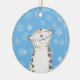 Hacer sonreír a alguien esta temporada festiva con este adorable adorno de árbol de Navidad cerámico que presenta a Animesh el leopardo de las nieves. El texto de la parte de atrás dice 'Feliz Navidad y puedes personalizarlo con tu propio mensaje ❄