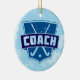 Diseño "COACH" de estilo escudo retro, con palos y pelota de hockey de campo cruzados. Diseño divertido para entrenadores de hockey de campo, y montones de ideas de regalo para el entrenador de tu equipo. Los elementos se pueden personalizar con su propio texto. Fiestas / adorno navideño. Revisa mi tienda para muchos más diseños con un fondo de Navidad genial! Ideal para los árboles navideños de los aficionados al deporte, y excelentes regalos para tu familia y amigos deportivos locos.