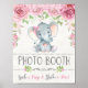 Propaganda adorable para cabina de fotos con elefante bebé y flores rosas / Letrero de decoración