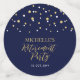 Espolvoree este folleto de personalizado para añadir detalles a su fiesta de jubilación. Este diseño de confeti de tabla presenta un elegante tipo de guión "Fiesta de Jubilación", "vítores", "Feliz Jubilación" con fondo dorado y azul marino. Cartel de bienvenida de retiro coincidente, y suministros de fiesta están disponibles en mi tienda BaraBomDesign.