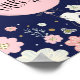 Cielo azul marino estrellado / flores rosas y blancas / decoración de guardería azul marino y rosa para niñas