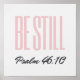 Un versículo de la escritura que consuela, parafraseado con dos palabras: "Estate quieto" del Salmo 46:10. Rosa y gris. [Imagen de fondo blanco texturizado de Freepik.com.] Ideal para la guardería de un bebé, oficina o cualquier lugar donde desees relajarte.