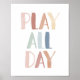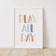 Decora el cuarto de tus pequeños con este diseño de 'jugar todo el día' en acuarela y colores de arcoíris.