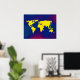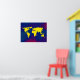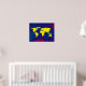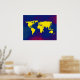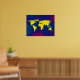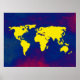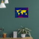 Un mapa gráfico amarillo del mundo sobre un fondo azulado. Un ilustracion digital de temática geográfica genial para tu pared